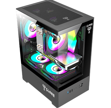 Compacto e imponente, o gabinete gamer Megalon da Clanm é ideal para quem busca um setup otimizado. Compatível com Mini-ITX e mATX, comporta até 5 fans e traz um painel lateral em vidro para exibir seus componentes com estilo.