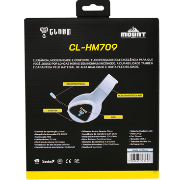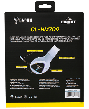 Com áudio potente e design sofisticado, o headset gamer Snow Mount da Clanm entrega som surround 7.1 virtual e iluminação Running. Seu microfone ajustável, almofadas ergonômicas e alto falantes de 50mm garantem conforto e comunicação nítida para cada partida.